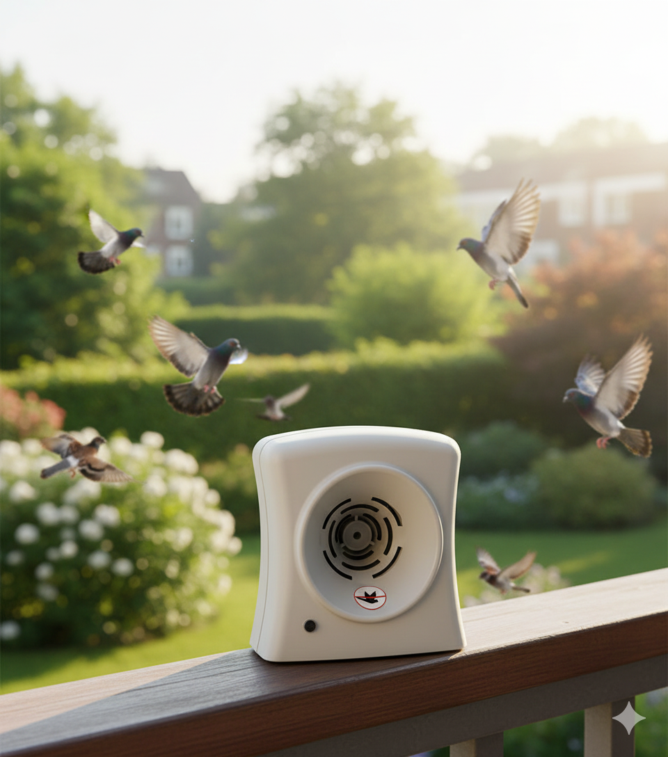 Kompakt ve pratik tasarımı sayesinde balkon korkulukları, zemin veya uygun yüzeylere kolayca konumlandırılabilir. Kimyasal, zehir veya fiziksel temas gerektirmeden çalışır; kuşları rahatsız ederek alandan uzaklaşmalarına yardımcı olur, zarar vermez. Bu özelliğiyle çevre dostu ve güvenli bir çözüm sunar.