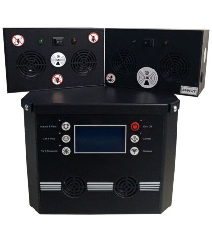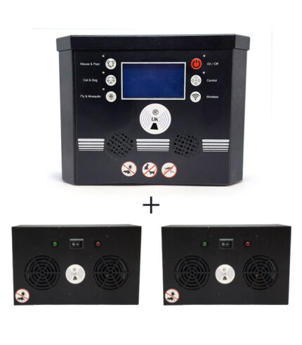 1 adet verici ve 2 adet alıcı cihazdan oluşan bu set, sinyal yayılımını güçlendirerek 1000 m²’ye kadar etkili kapsama alanı oluşturur. Ev, depo, iş yeri ve geniş alanlarda zararlıların uzaklaştırılmasına yardımcı olur.